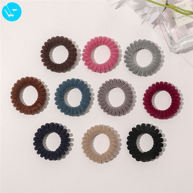 Élastiques à cheveux en velours bouclés en forme de ligne téléphonique PL Flocking