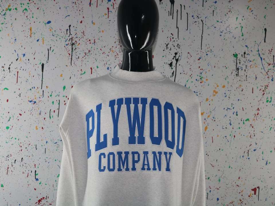 Sweat-shirt à col montant blanc PLYWOOD COMPANY 100% bleu avec broderie appliquée, col large, CLUSH SPORTS
