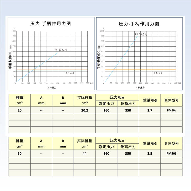 Pompes à huile manuelles portables PM20s-50s à haute pression pour systèmes hydrauliques, gamme complète de pressions stabilisées