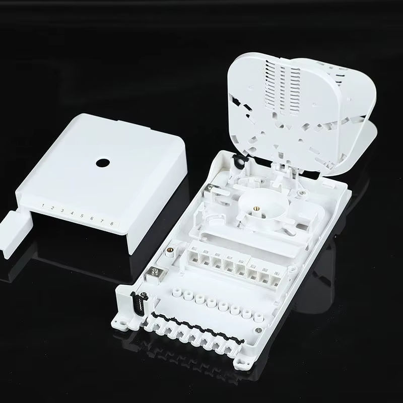 Utilisation intérieure et extérieure compatible POE Séparateur 1*8 Boîtier de fibre optique à montage mural Boîte de distribution de fibre optique à 8 noyaux