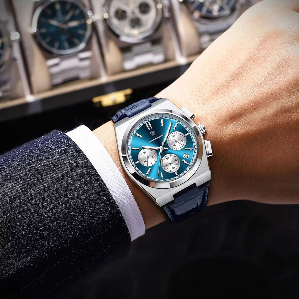 970 Luxury Watch for Men Leather Sports Man Watch Waterproof Luminous Chronograph Date Quartz Men's Watches Reloj Gift