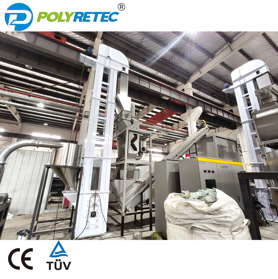 POLYTEC Conteneurs de bouteilles en plastique rigide innovants PEHD PP Bouteilles Seaux Couvercles Concassage Lavage Ligne de recyclage avec laveuse à chaud