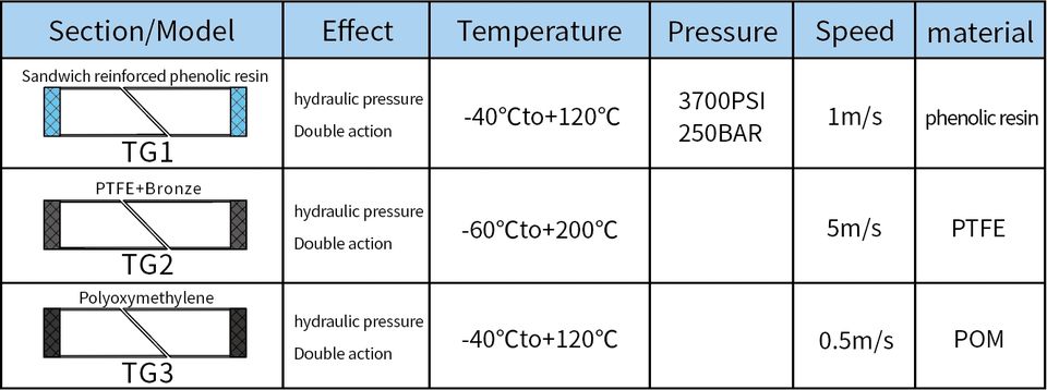 Joint de piston à double action haute performance 3700 PSI de marque TY, composé POM PTFE Bronze, support phénolique, avec bague de guidage, fabriqué par le fabricant