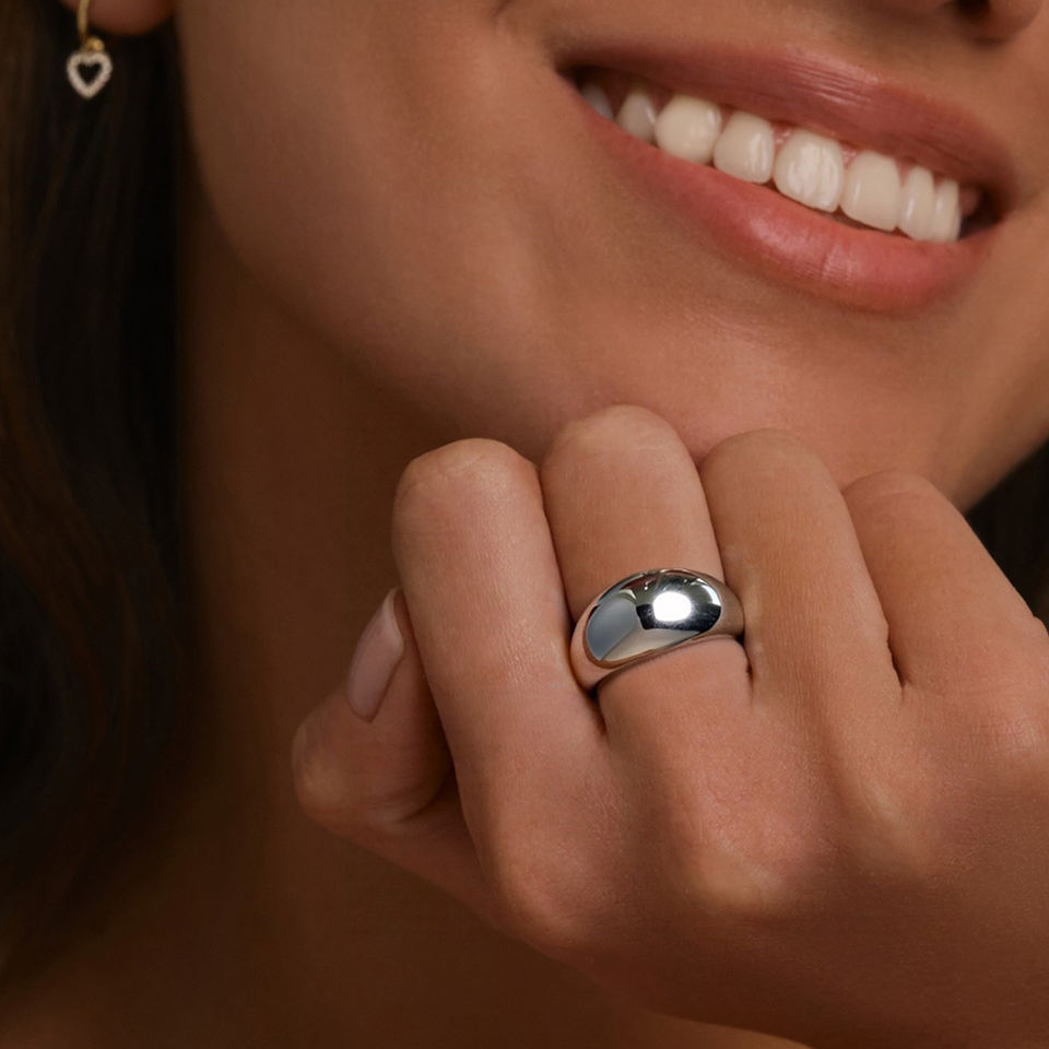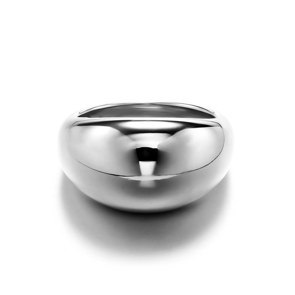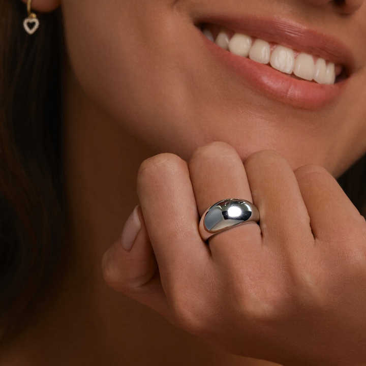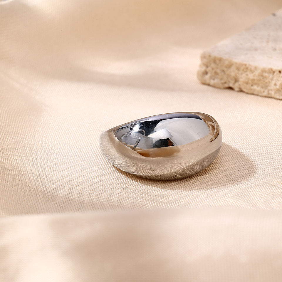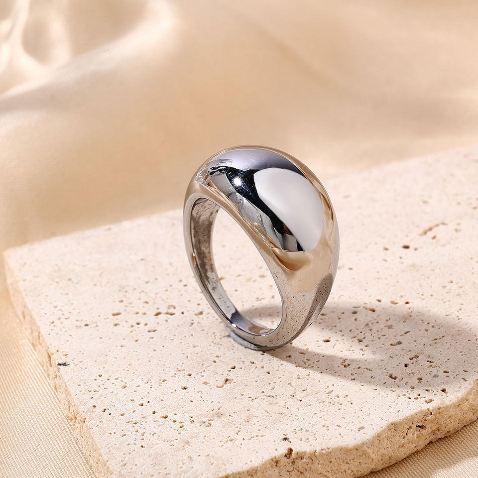 Bague épaisse POP en acier inoxydable plaqué argent, lisse, poli, haute texture, lourde, signature simple, bijoux classiques