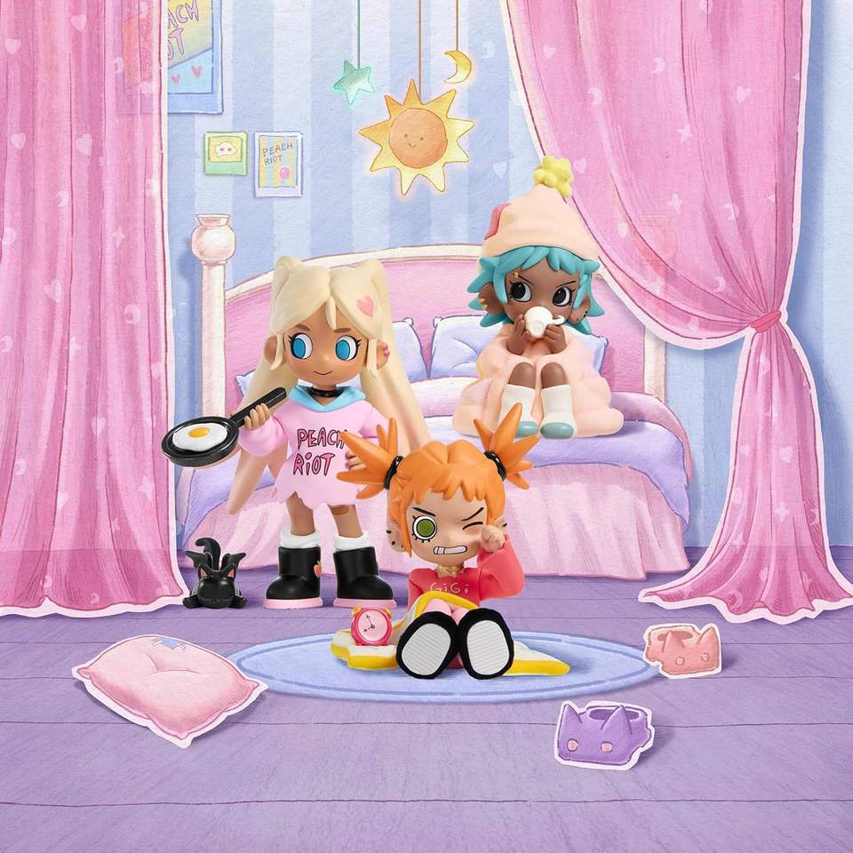 POP MART Lil Peach Riot Sleepover Series Blind Box Figurines d'action Jouets de collection Cadeaux de Noël et d'anniversaire pour filles et garçons