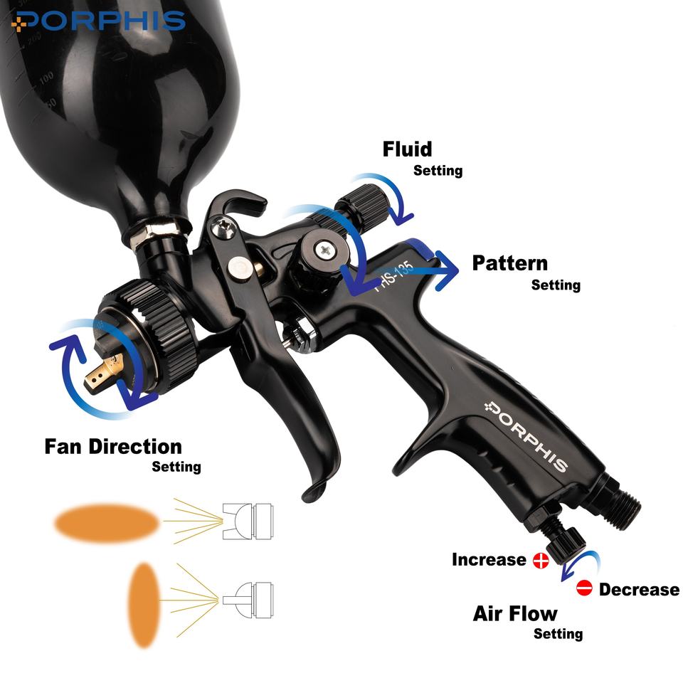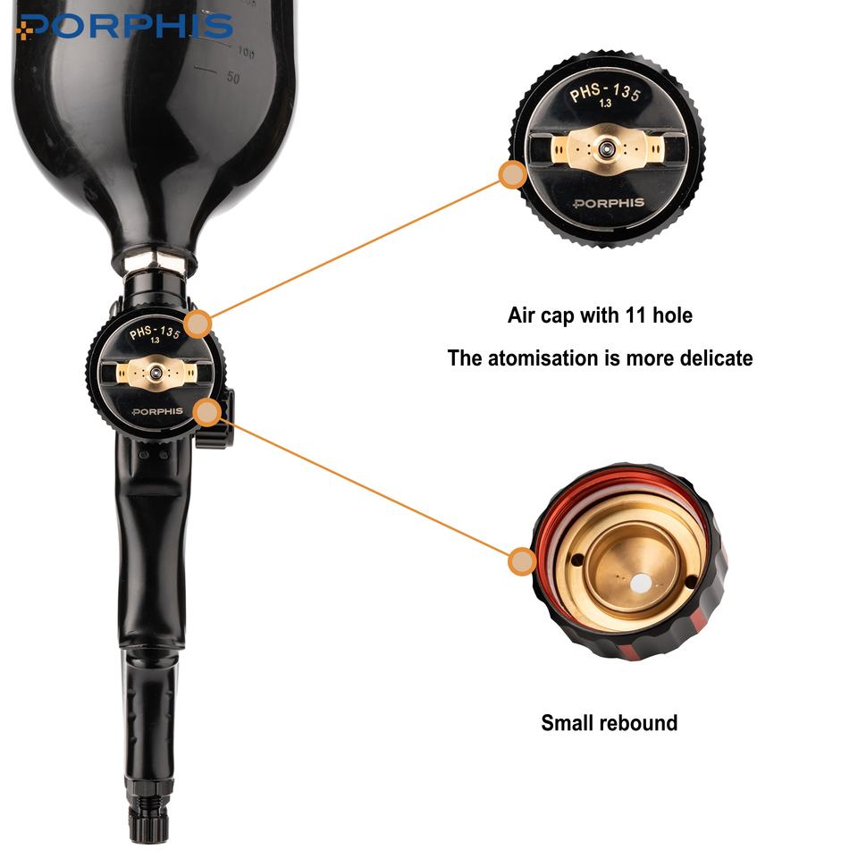 PORPHIS PHS-135 haute pression 600ml Pot noir alimentation par gravité aérographe outil pneumatique vernis peinture pulvérisateur