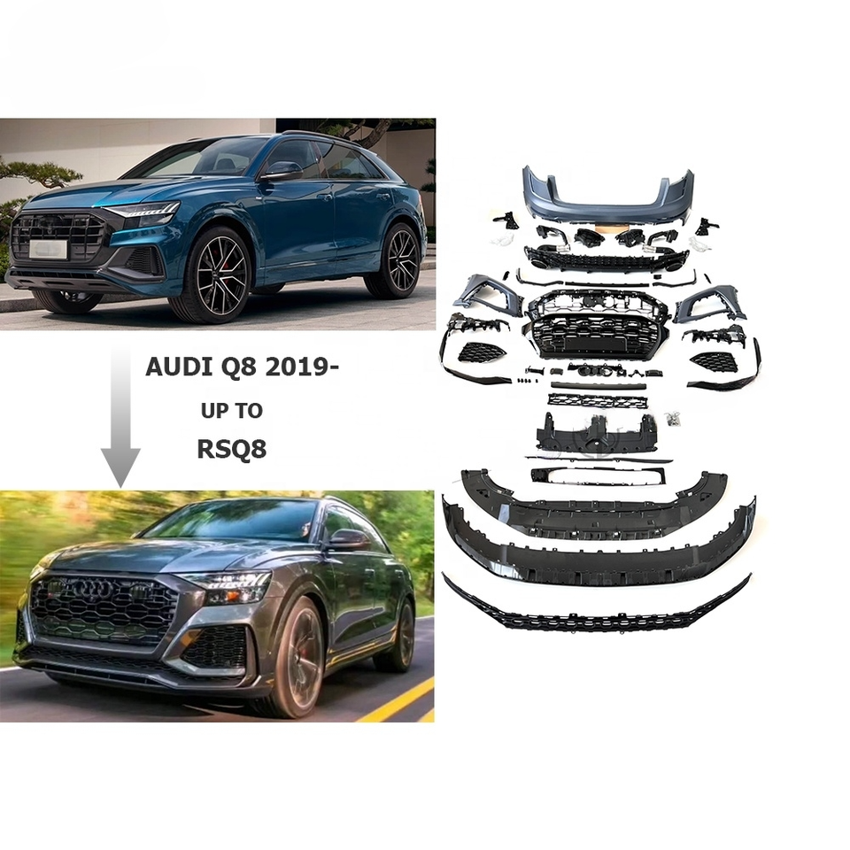 Kit carrosserie PP pour Audi Q8 2019 et plus, style RSQ8, pare-chocs PP, calandre, embouts d'échappement, accessoires de voiture, pièces de tuning automobile