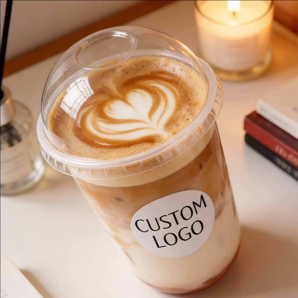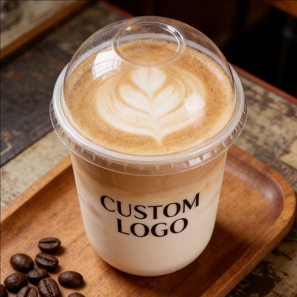 Gobelets à café en plastique PP à paroi simple, 14 oz, 200 ml, diamètre 90 mm, avec couvercle en dôme, impression UV, jetables, pour les cafés