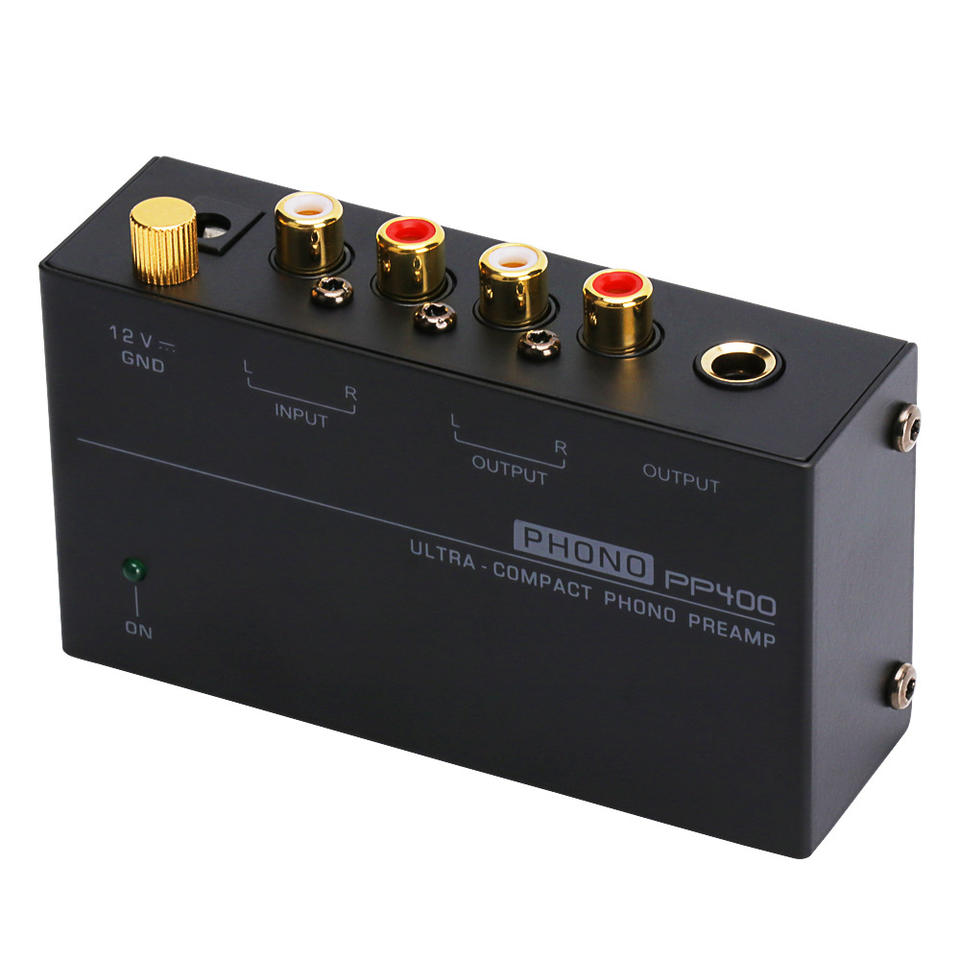Préamplificateur Phono Ultra-Compact PP400 pour Platine Vinyle Faible Bruit Mini Préamplificateur Audio avec Entrée Sortie RCA Égaliseur RIAA
