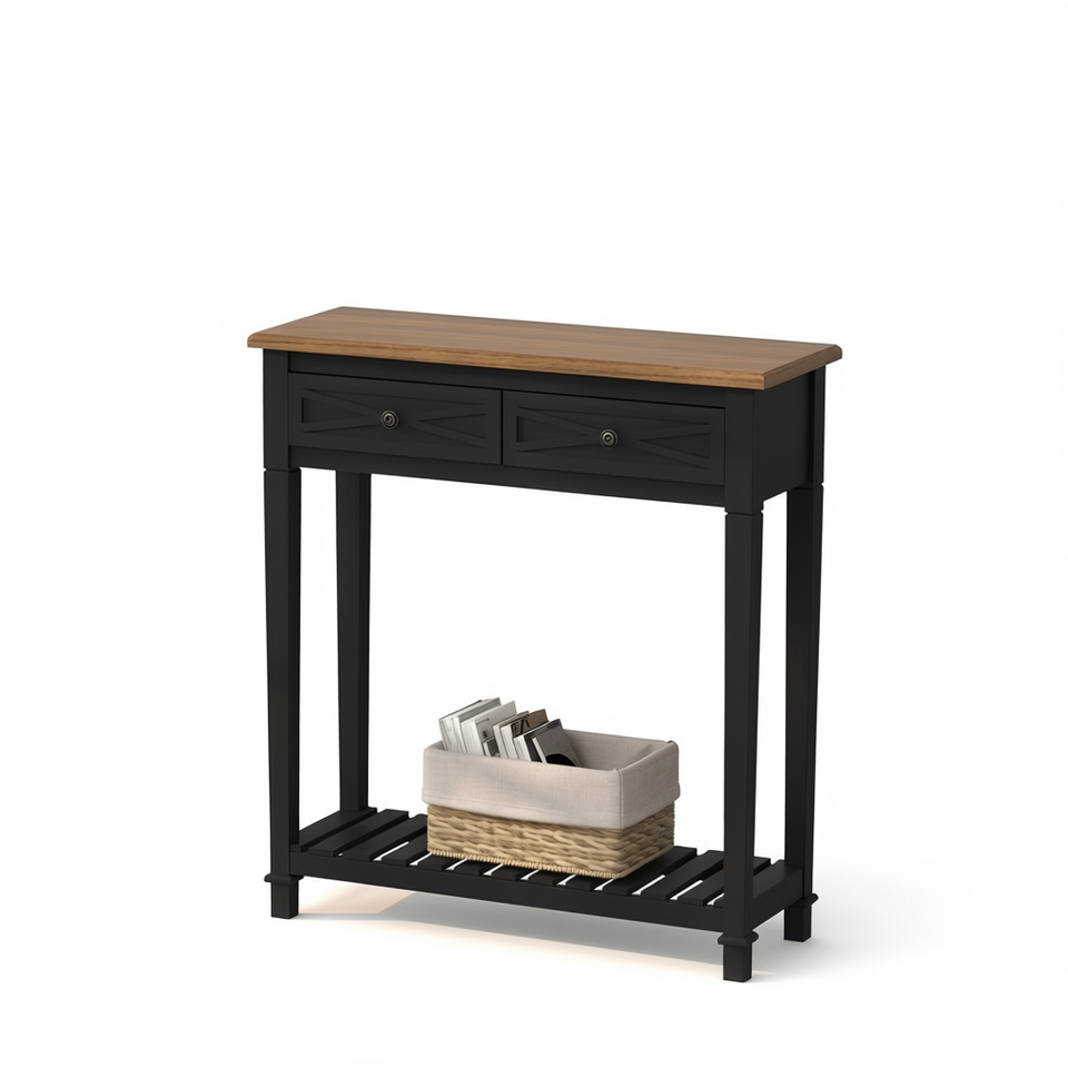 Table console PPL de 30 pouces avec plateau en bois noir, style farmhouse, étagère de rangement pour entrée