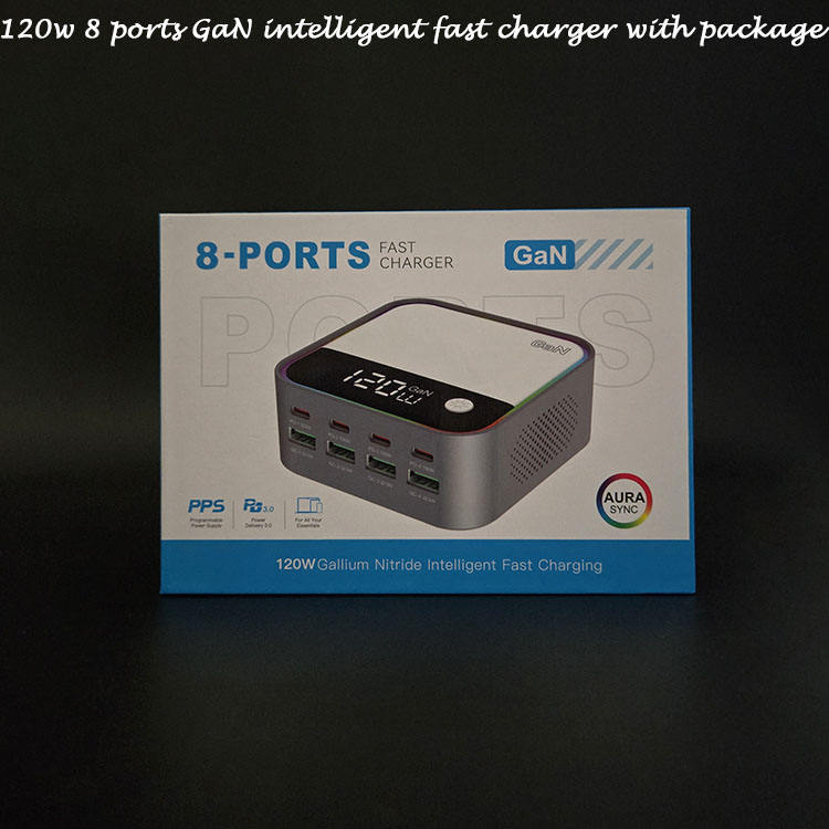 Nom du produit:Chargeurs multi-ports intelligents GaN 8 ports 120 W colorés RVB