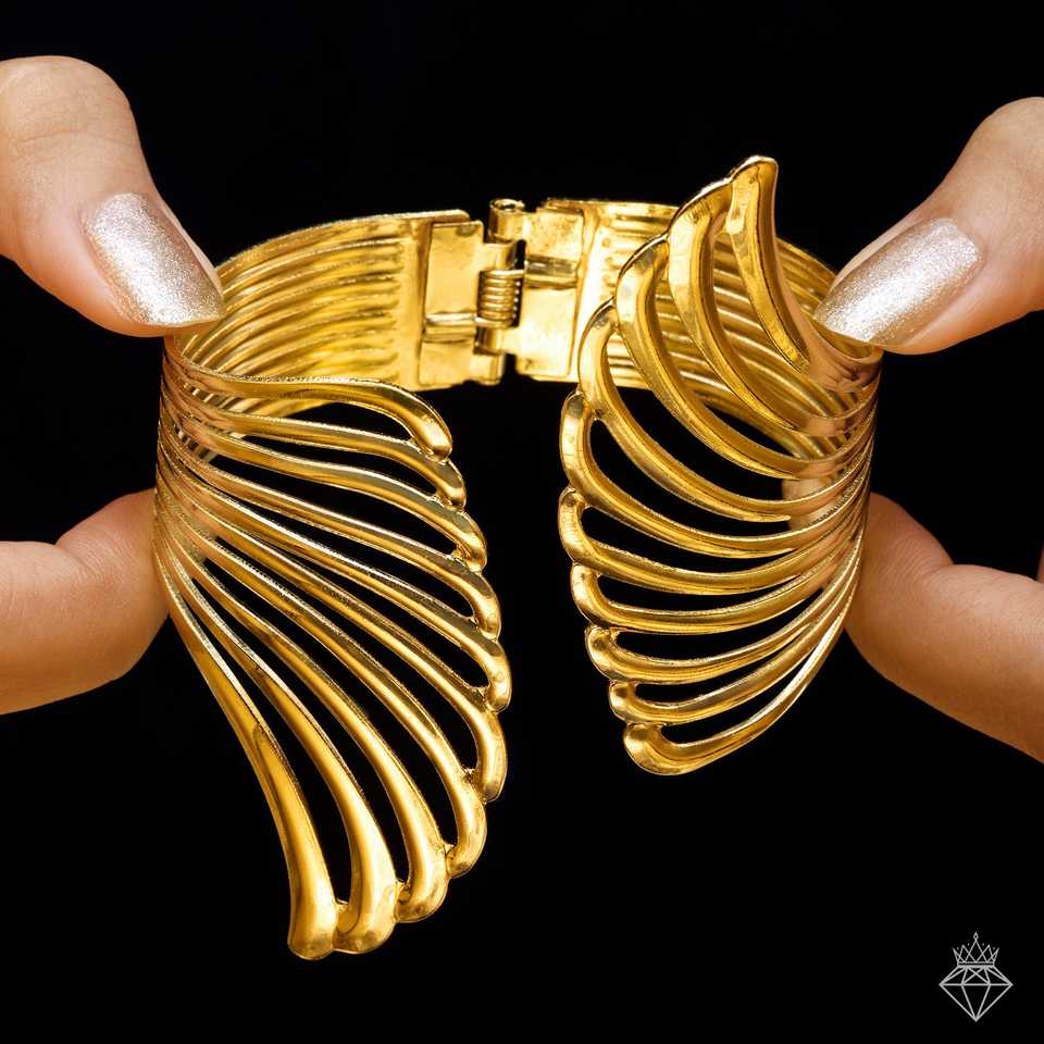 Bracelet jonc ailes plaqué or anti-ternissement PRAO Collection joncs fins