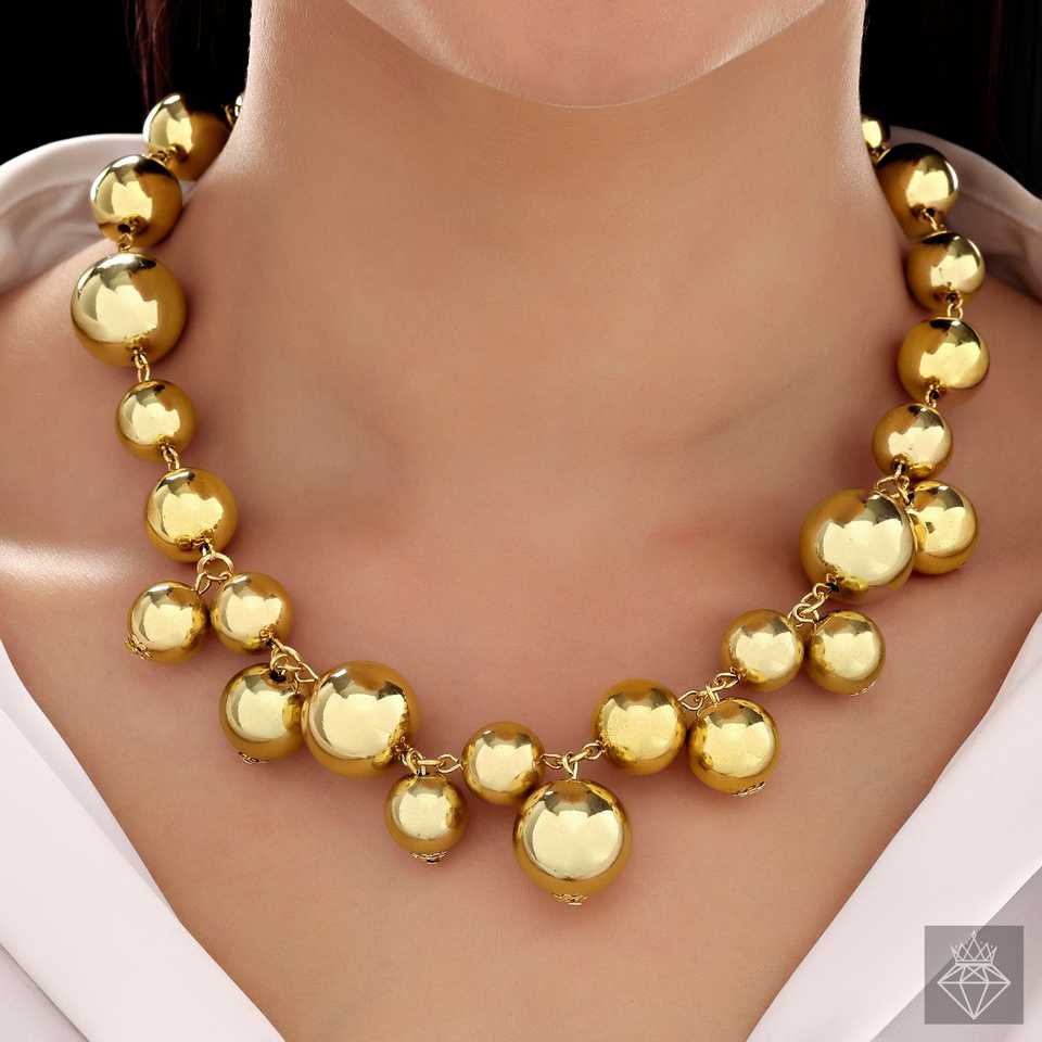 PRAO Anti-Tarnish Golden Balls Necklace Fashionable Accessory with Unique Design