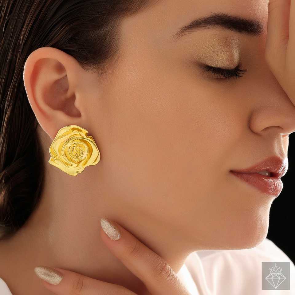 PRAO Golden Rose Flower Stud Earrings Anti-Tarnish Fine Jewelry