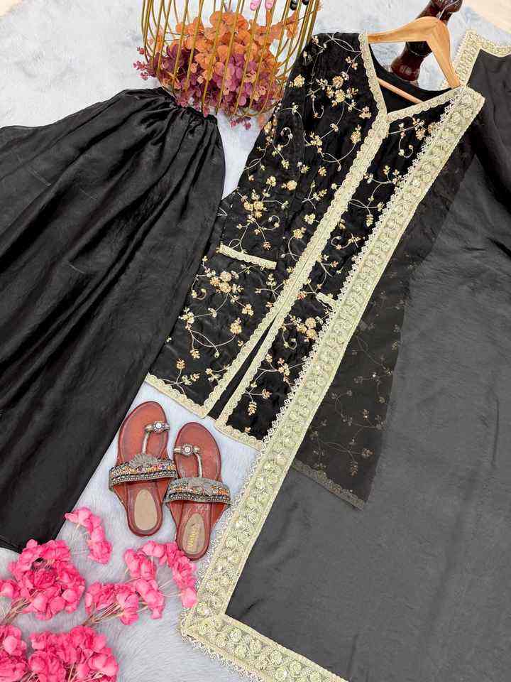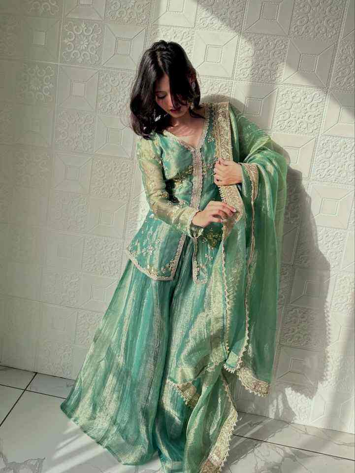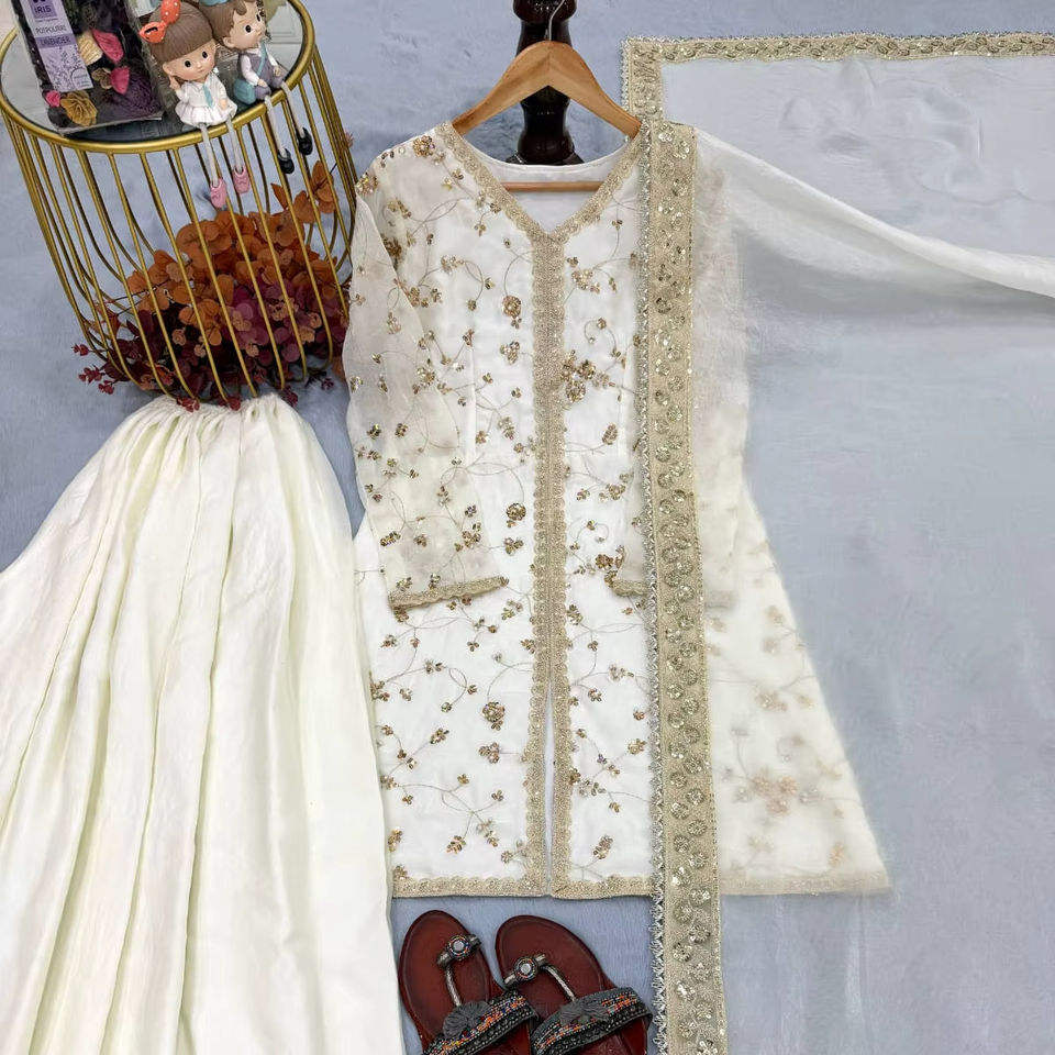 Ensemble de soirée haut de gamme prêt-à-porter en tissu BLOSSOM de qualité supérieure, style Sharara avec Dupatta, orné de broderies à sequins, en Faux Georgette, toutes saisons