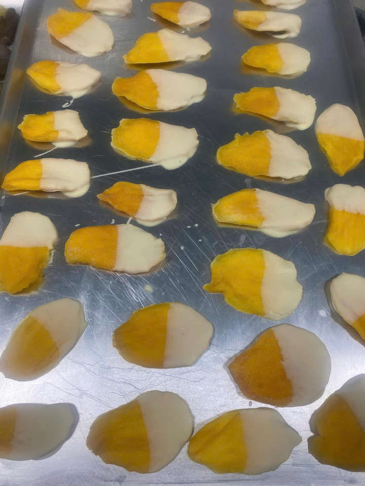 Ingredients:60% mango, 40% dark chocolate and sugar