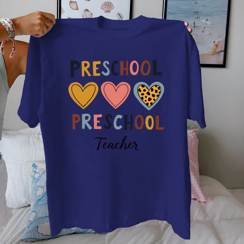 PRESCHOOL Teacher with colorful hearts pure cotton women's Tshirt comfort fit