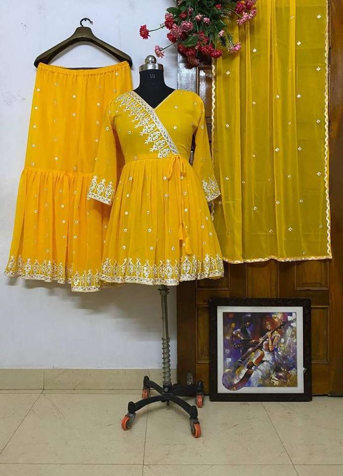 Présentation de New Top-sharara Set Top en Georgette lourde de bonne qualité avec une belle Georgette Sharara entièrement brodée et lourde