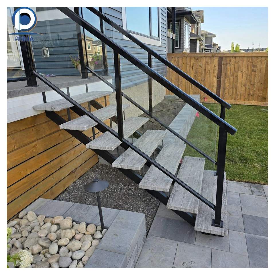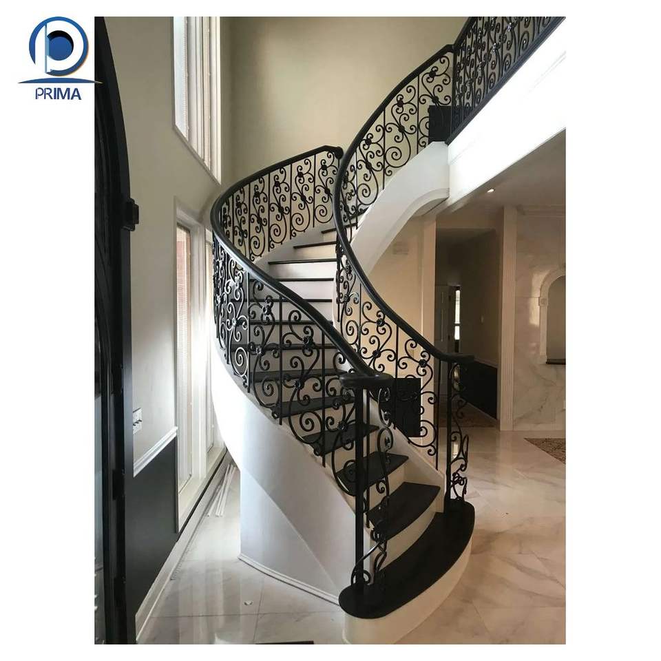 PRIMA Durable verre trempé fer garde de sécurité Design moderne intérieur/extérieur escalier en colimaçon garde-corps poudre manteau finition pour
