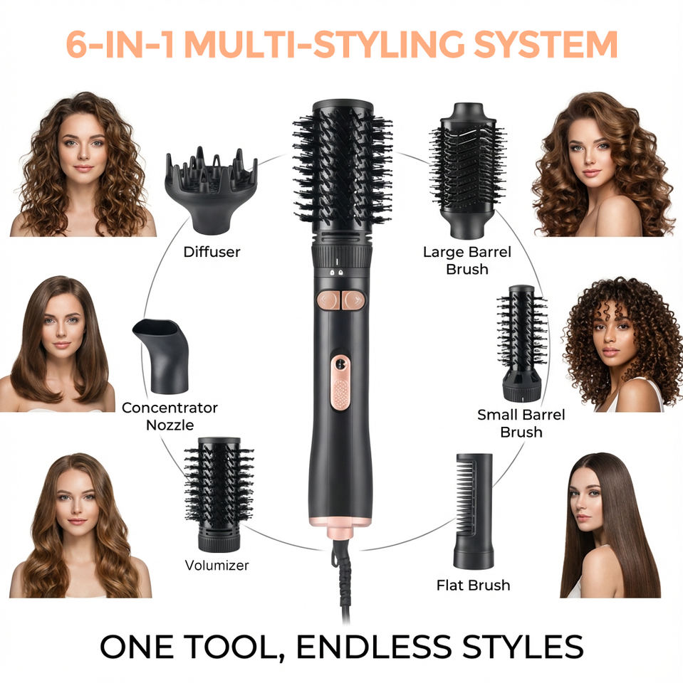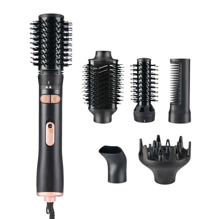 PRITECH Ensemble de Brosse à Air Chaud Multi-Rotative 6 en 1 1000W Brosse Sèche-Cheveux Rotative Brosse Sèche-Cheveux Professionnelle avec 6 Remplacements