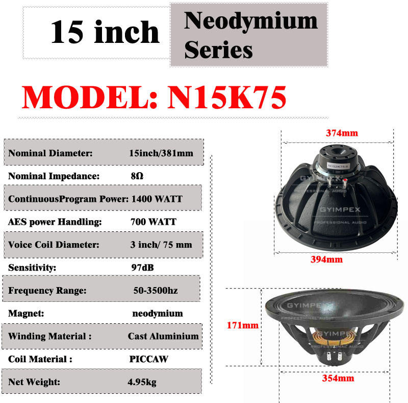 COMPOSANTS PROFESSIONNELS Bobine vocale en cuivre de 76 mm (3 pouces) 1400 W Programme continu Capacité de puissance 15 "Woofer en néodyme