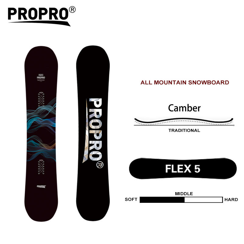 Snowboard PROPRO Freestyle pour homme adulte, sports d'hiver en plein air, snowboard tout terrain, snowboard en fibre de verre, style camber