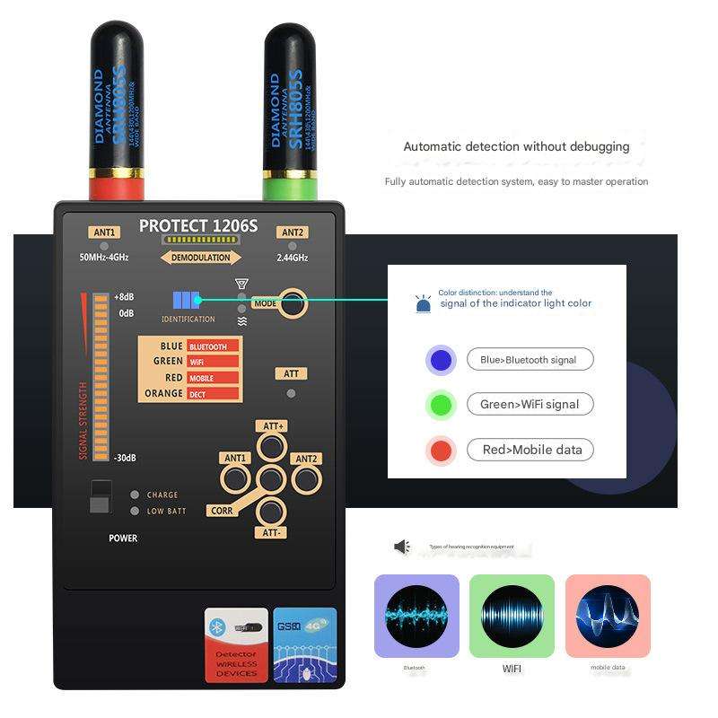 Détecteur de confidentialité PROTECT 1206S, détecte caméra/GPS/piégeur, sensibilité réglable pour la maison/l'hôtel, gadgets anti-espionnage