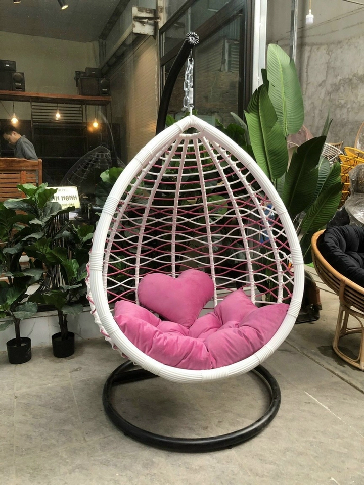 Fauteuil suspendu en poly rotin PRSW-047 avec cadre suspendu et coussin pour chambre à coucher, patio extérieur, villa, salon, hôtels