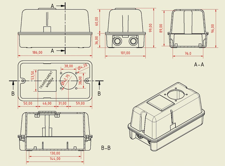 Boîtier plastique haute performance PS-14H14 avec fenêtre transparente IP42 pour compteurs électriques et dispositifs de mesure, prise SCHUKO
