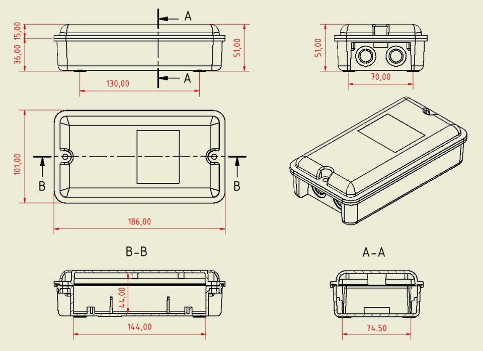 186x101x51mmTaille externe