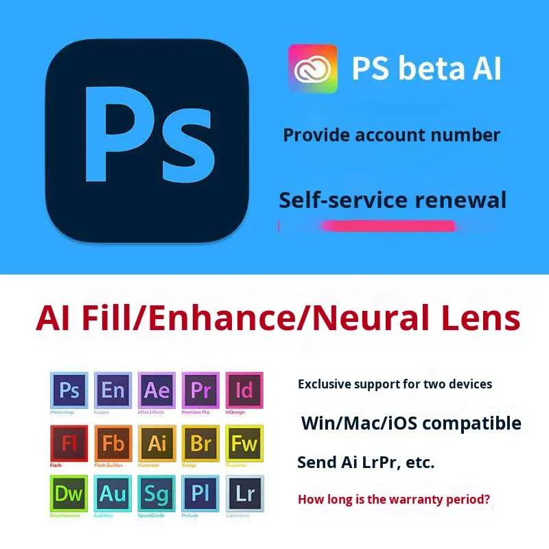 PS AI pour l'extension et le remplissage d'images tout-en-un, abonnement authentique 2025, Pr AE Creative Chine pour Adobes