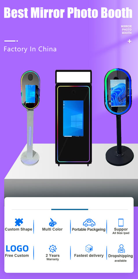 PT Magic Mirror Photo Booth Complete Set iPad Camera Support 360 Foldable Stand 5-6 People Capacity 15.6inch Interactive