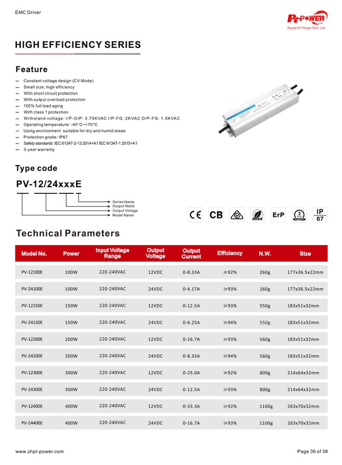 PV-12100E(12V 100W), PV-24100E(24V 100W)
