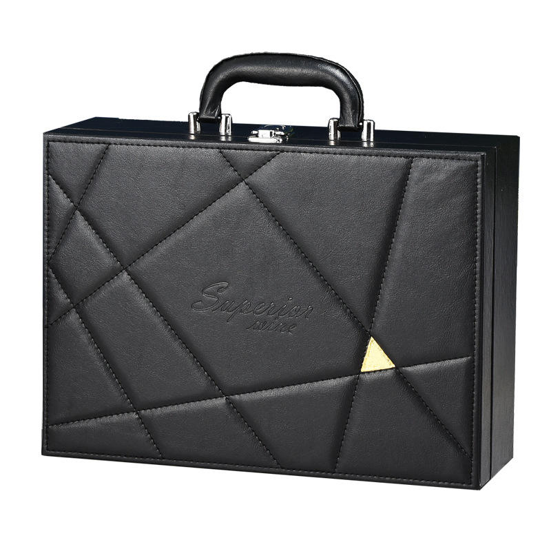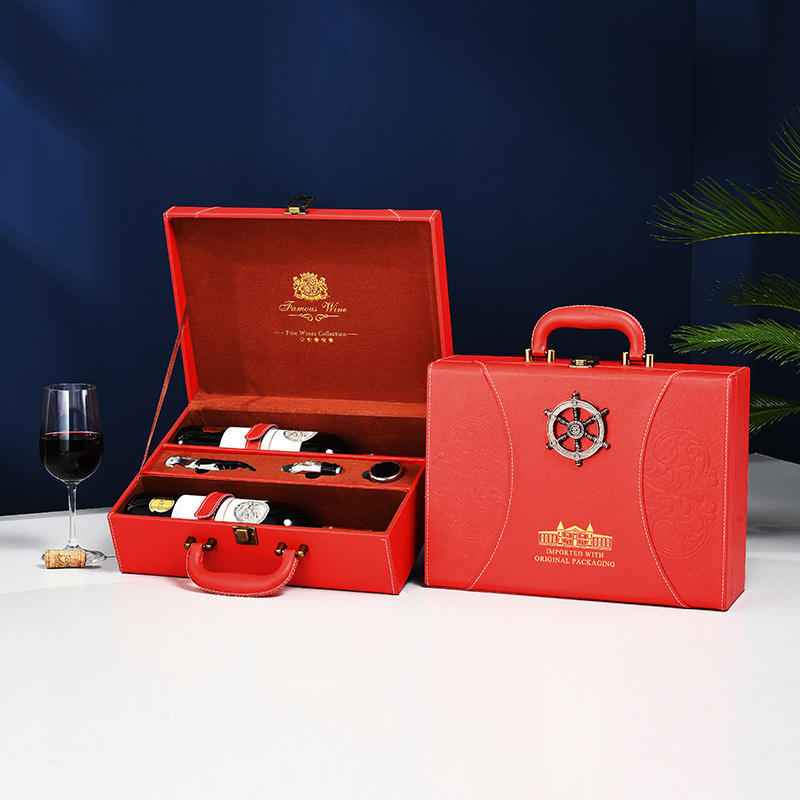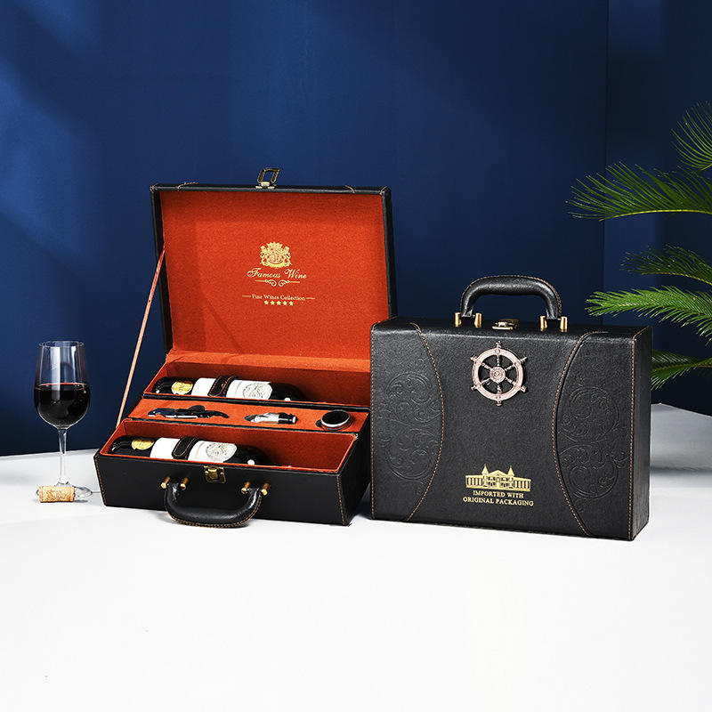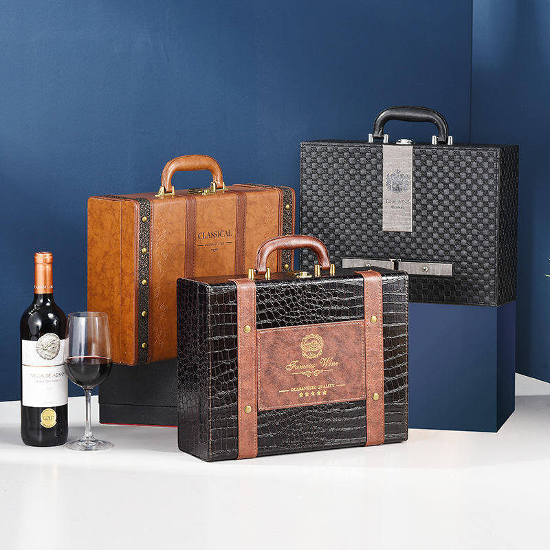Boîtes en PU sur mesure en carton de luxe emballage en cuir classique boîte cadeau de vin petite boîte de valise en cuir