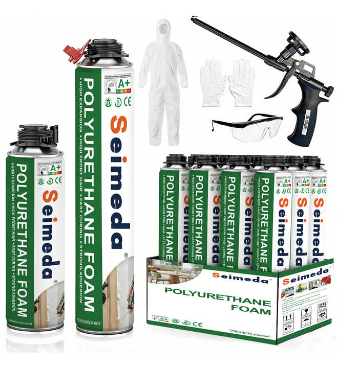 Kit d'application de mousse PU avec nettoyant et équipement de protection individuelle complet (blouse, lunettes, gants) pour 1, 6 ou 12 packs d'isolation professionnelle