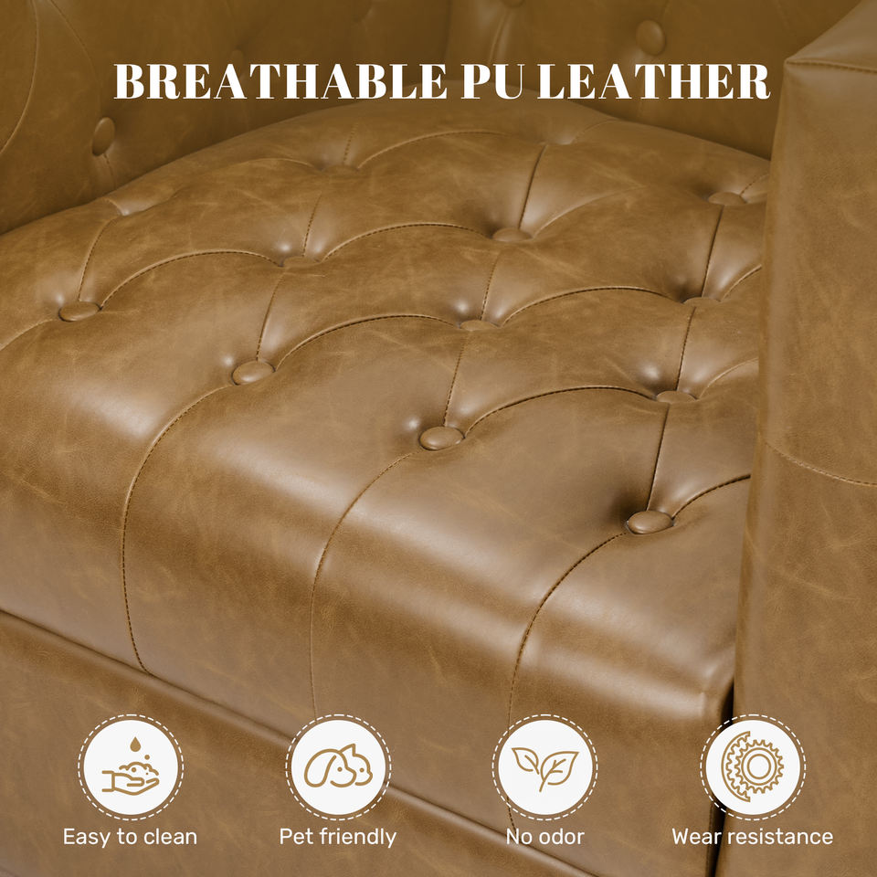 PU Leather 360 Swivel Modern Accent Chair Tufted Design Thickened High-Density Cushion Waterproof Eco-Friendly Bedroom Living