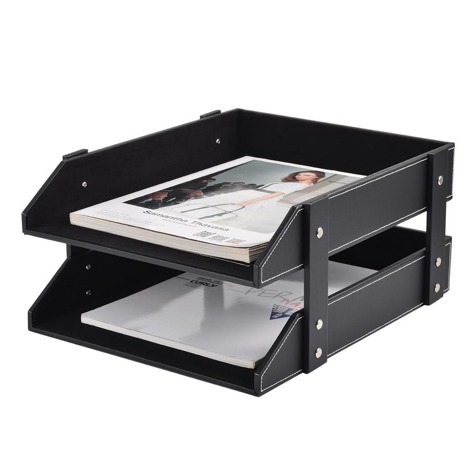 Bac à papier A4 en cuir PU parfait pour l'organisation du bureau Premium File Document Tray Desk Letter Organizer Holder Brown