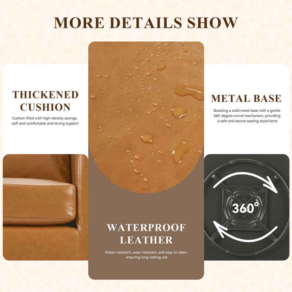 Fauteuils pivotants convertibles en cuir PU, fauteuil moderne de style mid-century pour appartement, salle à manger et chambre à coucher