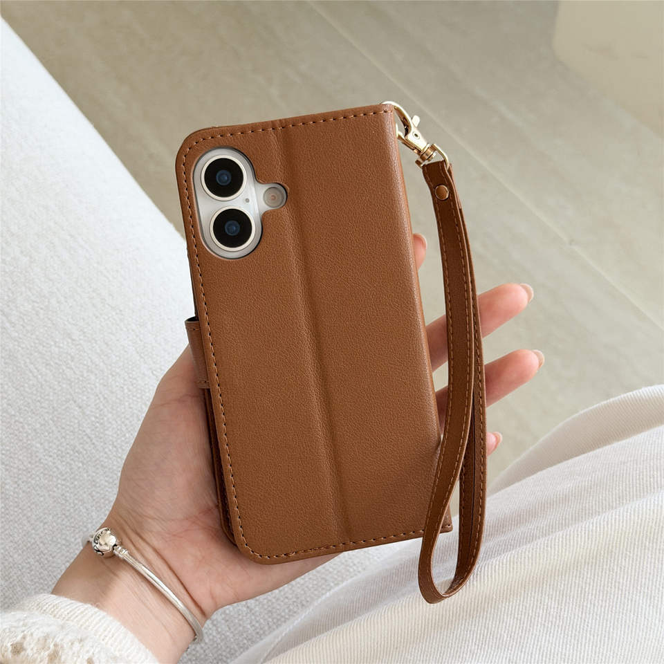 Étui à rabat professionnel en cuir PU avec porte-cartes et long cordon de suspension