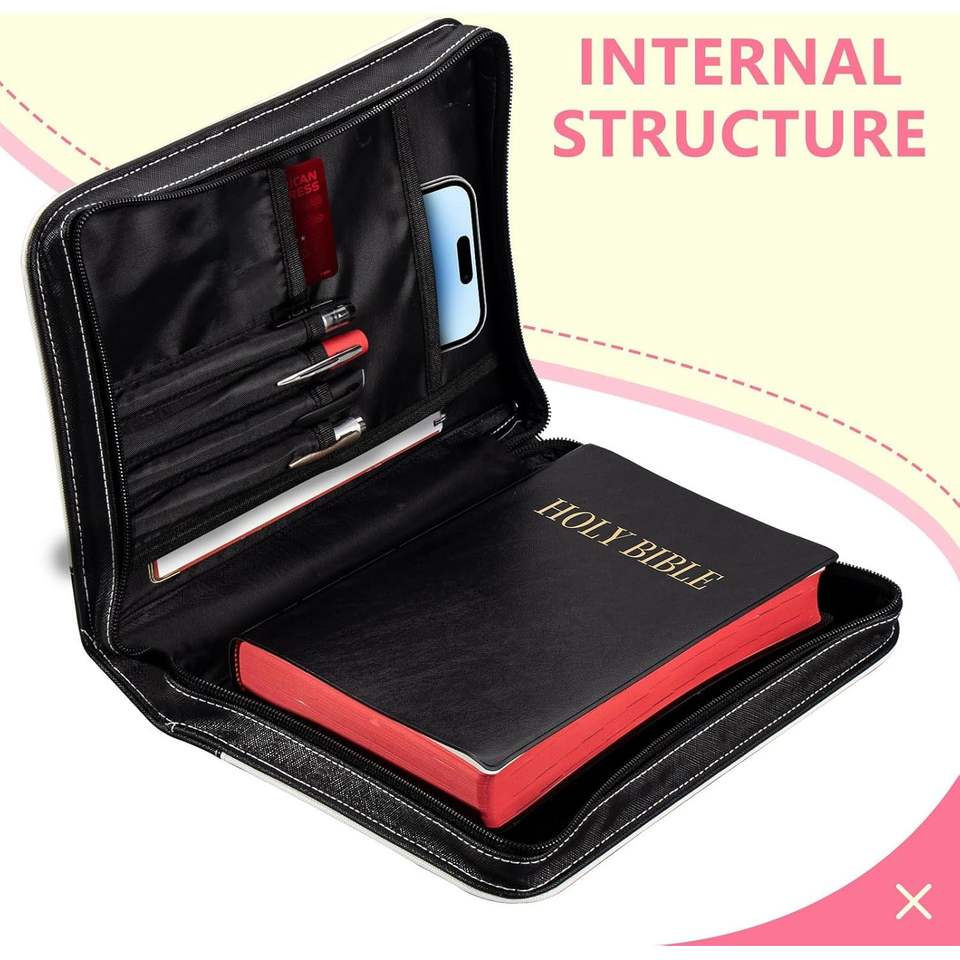 Étui de transport pour Bible en cuir PU de grande taille pour femmes avec pochettes en tissu, fermeture éclair pour livres jusqu'à [taille] fabriqué en Chine