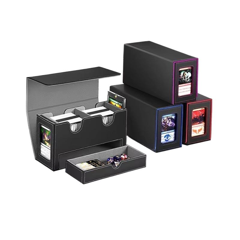 Boîte de rangement multifonctionnelle en cuir PU avec double fente magnétique, blocage RFID, motif uni, pour cartes de visite et cartes de collection