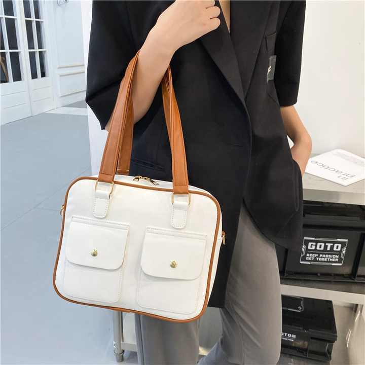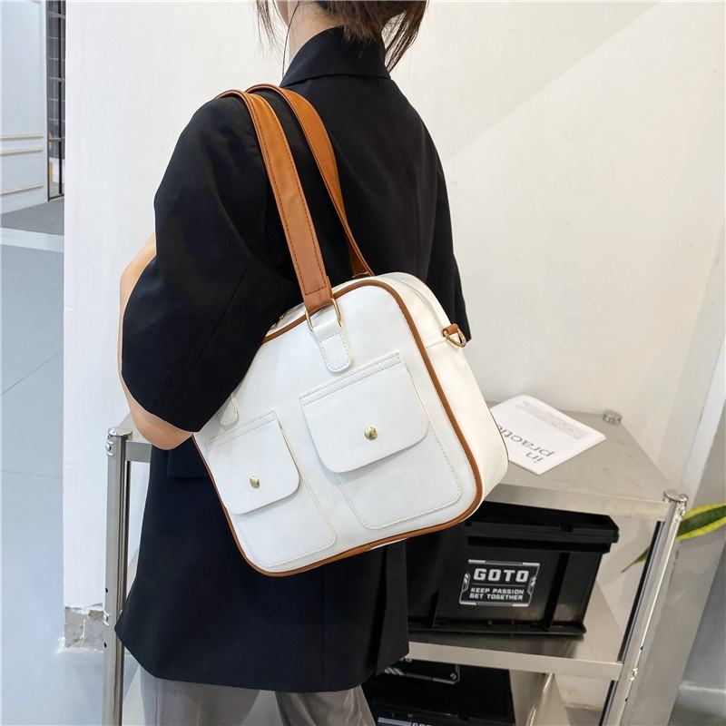 Sac à main rectangulaire en cuir PU, poches avant, compartiment intérieur, Logo personnalisé, Rivets, imperméable, fourre-tout d'extérieur