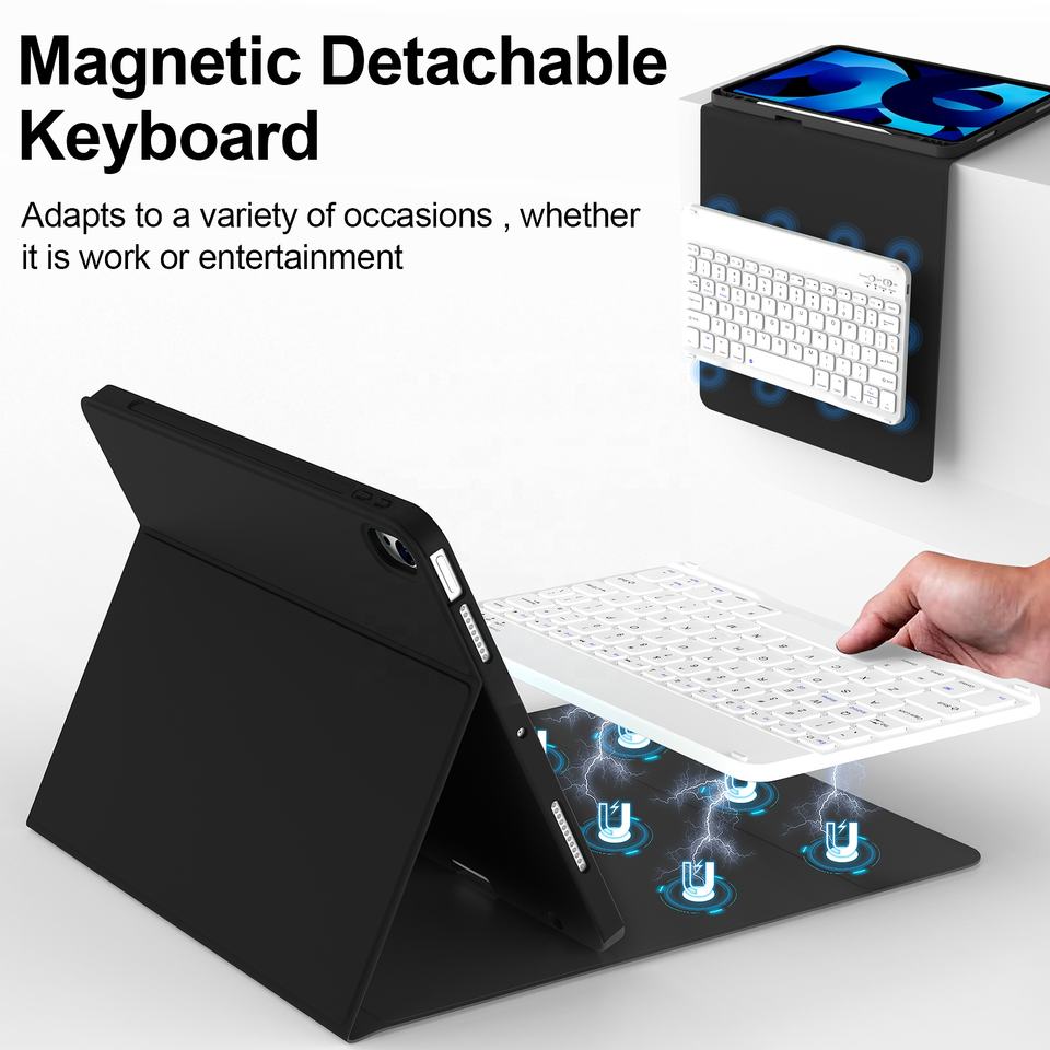 Coque arrière en cuir PU souple avec détachable magnétiquement pour étui à clavier Bluetooth pour iPad Air 5e génération (2022)