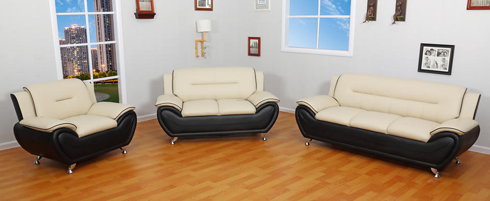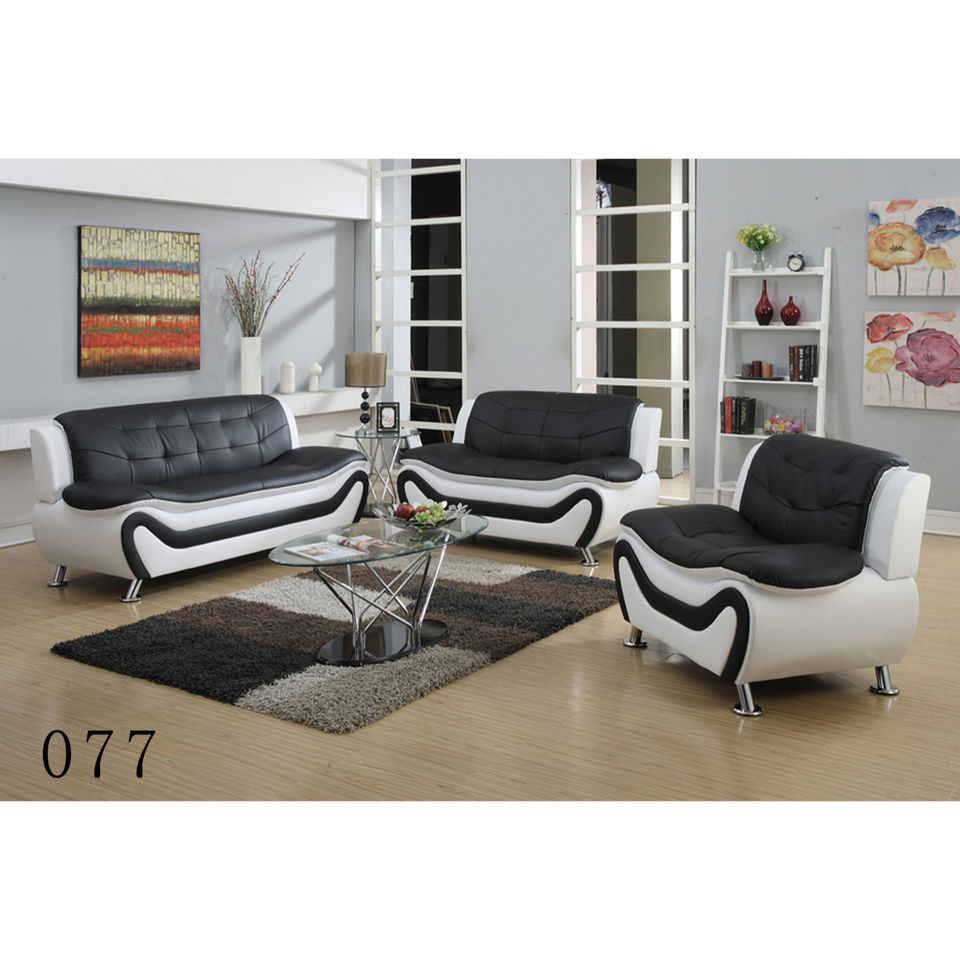 Ensemble de canapés en similicuir PU PVC noir et blanc, canapé moderne pour salon, une, deux ou trois places avec pieds en métal