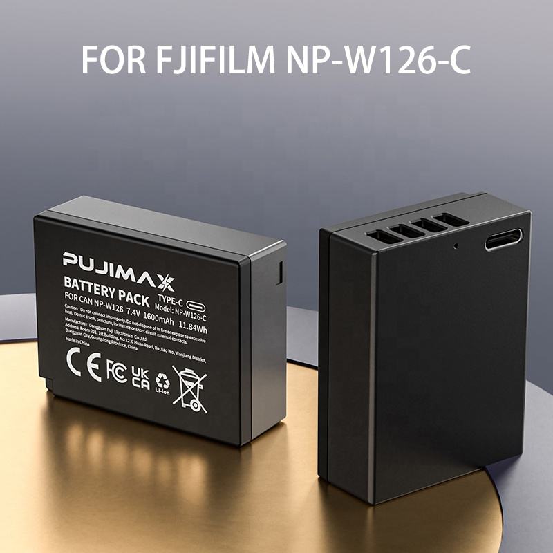 PUJIMAX 2 pièces 1600mAh Type C NP-W126 Batterie d'appareil photo pour Fuji X-T10 X-T2 X-T20 X-E1 X-E2 X-E2S X-A1 X-A2 X-A3 X-A10 X-M1 X-H1