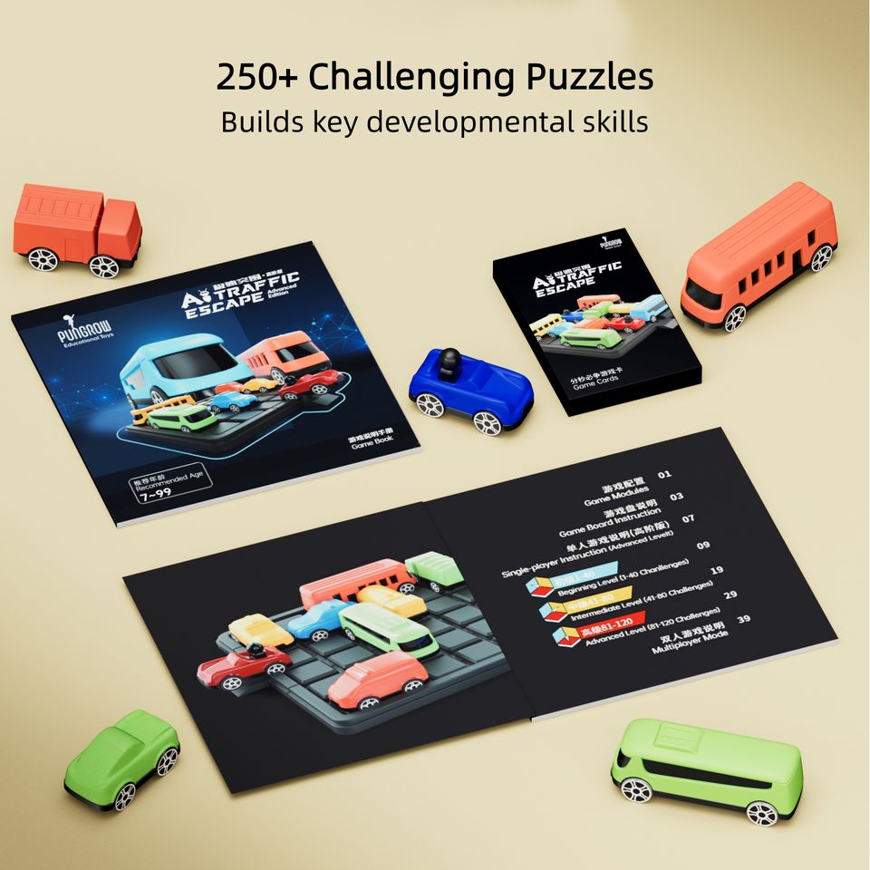PUNGROW 250 Challenge Puzzle Board Game, Matériel éducatif, Jouet de construction, Jeux de table pour enfants, Thème Voiture, Trafic, Évasion