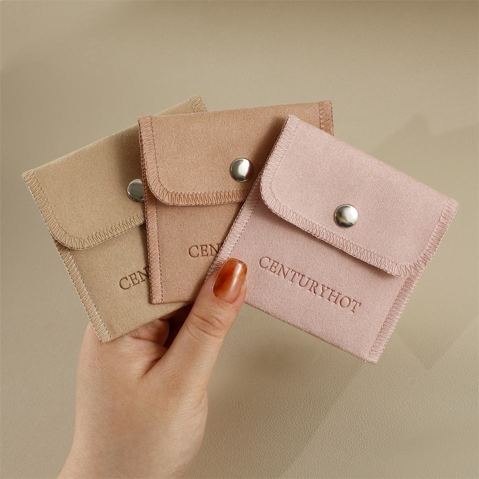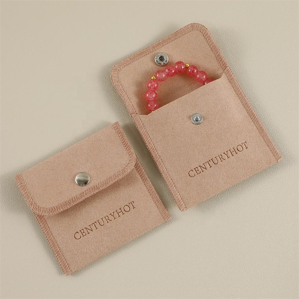 Pochette à bijoux en microfibre personnalisée PUPPYSEW, pochette d'emballage de bijoux faits à la main avec bouton pression, sac à bijoux 8*8cm avec logo