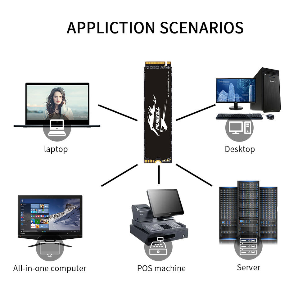 PUSKILL Vente en gros d'usine NVMe M.2 2280 PCIE3.0 SSD 128 Go 256 Go 512 Go 1 To Meilleur prix pour les ordinateurs de jeu et les ordinateurs portables de jeu