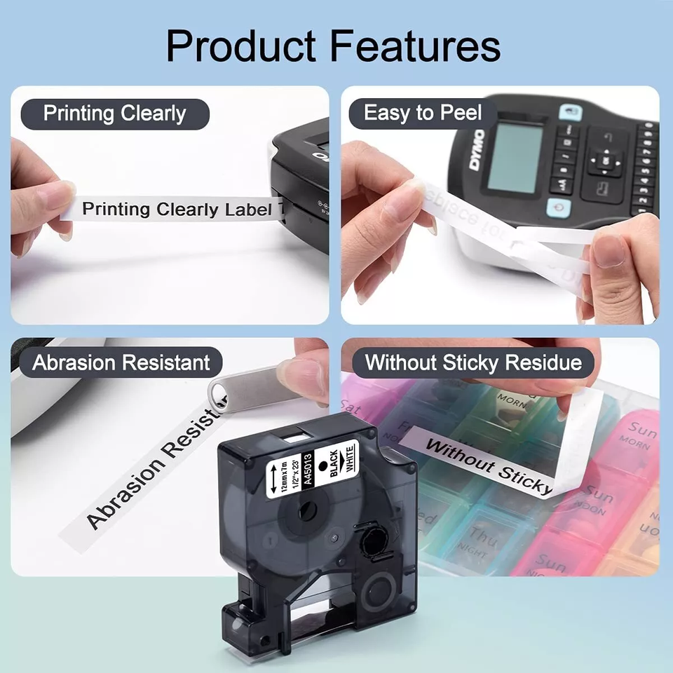 Rubans thermorétractables compatibles PUTY Dymo 9 mm PE+ABS pour imprimantes d'étiquettes - Durables et imperméables