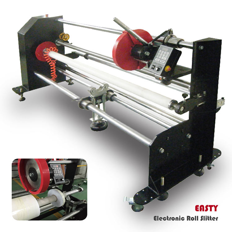 Découpeuse et rembobineuse de rouleaux de bâche en PVC, papier vinyle et ruban adhésif